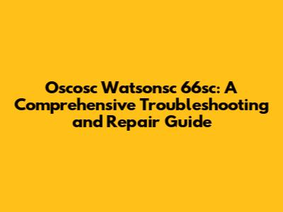Oscosc Watsonsc 66sc: Troubleshooting & Repair Guide