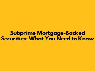 Subprime Mortgage-Backed Securities: What You Need To Know